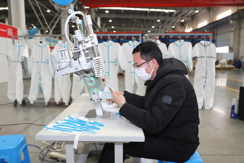同時,針對醫(yī)用防護(hù)服緊張的現(xiàn)狀,國機(jī)集團(tuán)下屬恒天重工緊急投入防護(hù)服壓條機(jī)的研制。在無圖紙缺技術(shù)的情況下,恒天重工連續(xù)奮戰(zhàn)9天,于2月19日研制成功首臺醫(yī)用防護(hù)服壓條機(jī),并通過工信部鑒定。2月20日,國機(jī)集團(tuán)下屬企業(yè)中國電研成功生產(chǎn)并交付首批醫(yī)用防護(hù)服壓條機(jī)。隨著國機(jī)集團(tuán)壓條機(jī)的批量生產(chǎn),國內(nèi)醫(yī)用防護(hù)服緊缺狀況將有效緩解。