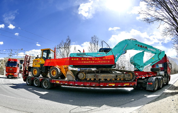 “新基建”加速賦能電網(wǎng)建設(shè)。中國安能集團第二工程局有限公司的工程車隊日前從拉薩市曲水縣啟程,奔赴阿里與藏中電網(wǎng)聯(lián)網(wǎng)工程建設(shè)工地。記者 張汝鋒 攝
