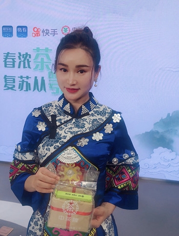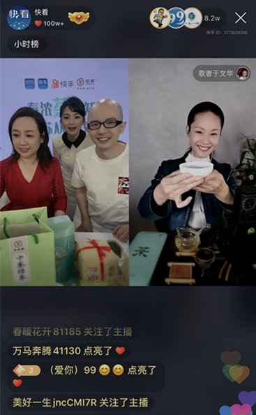 歌手于文華與正在直播間力薦2020年春茶的嘉賓關(guān)凌、平安連線