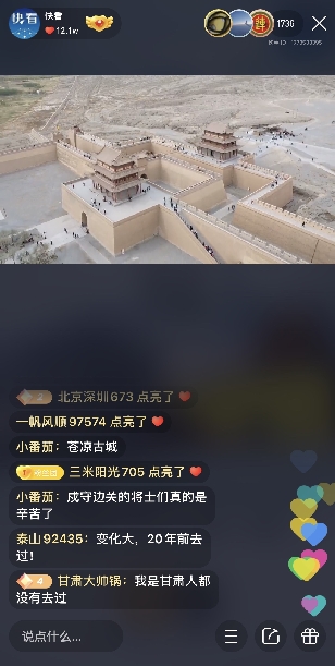 “出嘉峪關(guān)向西,便是絲綢古道。這座建成600多年的‘天下第一雄關(guān)’保存完好,是歷史人文無聲的見證。”5月5日上午,伴隨著“五一”小長(zhǎng)假即將結(jié)束,新華社“快看”直播地標(biāo)首季活動(dòng)也順利收官。五天的直播帶領(lǐng)全國(guó)網(wǎng)友“云游”北京前門、上海外灘、廣州塔、武漢黃鶴樓、天津古文化街,親歷上海“無界美術(shù)館”的奇幻和貴州大興東的清涼,“云”品嘗順德美食,在“大漠孤煙直”的嘉峪關(guān)結(jié)束旅程,既感受了歷史傳承的雄渾瑰麗,又品味了現(xiàn)代藝術(shù)與游樂設(shè)施的多姿多彩,有吃有玩,歡樂無限。數(shù)百萬網(wǎng)友在線觀看了此次直播系列活動(dòng),數(shù)十萬人點(diǎn)贊稱“快看一播,馬上就火”“有機(jī)會(huì)一定要親自去”“看得口水都快流下來了”“不愧是頂級(jí)直播號(hào),這個(gè)五一有意義”。