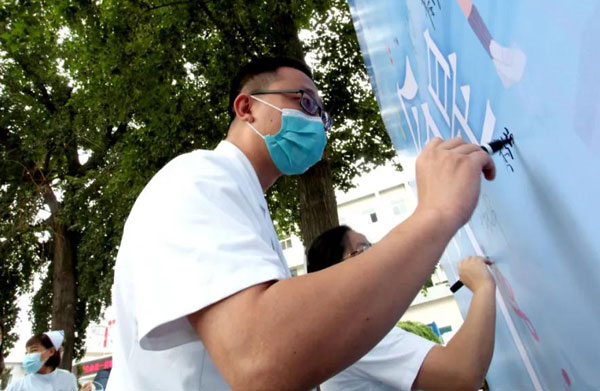 今天上午,山西省第二人民醫(yī)院在醫(yī)院中心花園舉行“生命是一首歌” ———中國(guó)器官捐獻(xiàn)日主題公益宣傳活動(dòng)。活動(dòng)分為公益宣教、現(xiàn)場(chǎng)登記、發(fā)放禮品互動(dòng)、免費(fèi)義診四個(gè)環(huán)節(jié),向參加活動(dòng)的職工、患者及患者家屬普及器官捐獻(xiàn)相關(guān)知識(shí),讓大家了解器官捐獻(xiàn)的意義,現(xiàn)場(chǎng)嘉賓、醫(yī)務(wù)人員以及參加活動(dòng)的患者及家屬在簽字墻上簽下承諾和大愛。