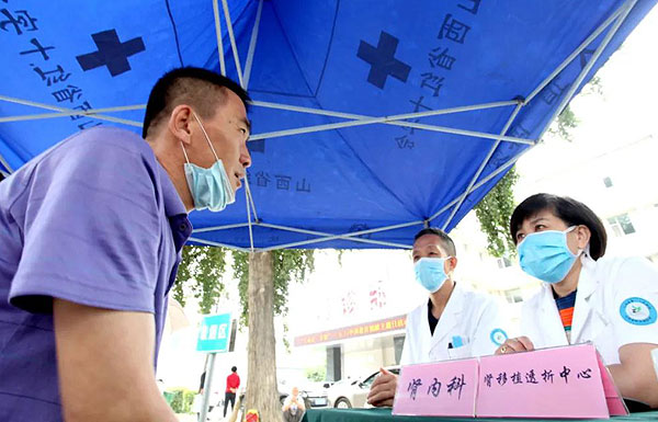 活動(dòng)現(xiàn)場(chǎng),我院腎移植科、腎內(nèi)科、泌尿外科專家為患者義診。本次活動(dòng)共計(jì)發(fā)放宣傳資料100余冊(cè),接受咨詢30余人次,并有醫(yī)務(wù)人員現(xiàn)場(chǎng)完成志愿捐獻(xiàn)器官登記,加入器官捐獻(xiàn)志愿者隊(duì)伍。同時(shí),通過醫(yī)院LED顯示屏播放中國(guó)器官移植發(fā)展基金會(huì)、省紅十字會(huì)及山西省人體器官獲取與分配服務(wù)中心宣傳片。