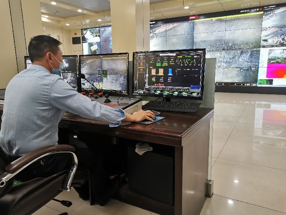 在董合波面前,井下開采的實時畫面流暢地顯示在電腦屏幕上。畫面里偶爾才有人影閃過,那是他在現(xiàn)場巡檢的同事。