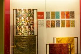 南京云錦博物館館藏近千件云錦文物及相關(guān)實(shí)物,是中國傳統(tǒng)審美和高端紡織品織造技藝展示的窗口。在現(xiàn)場(chǎng)的諸多展品中,龍袍料堪稱鎮(zhèn)館之寶,根據(jù)明十三陵絲織文物復(fù)制,長達(dá)12米,不僅輕薄透空,還恢復(fù)了失傳300多年的妝花紗工藝,“天衣無縫”在這件展品上體現(xiàn)地淋漓盡致。