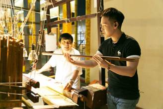 活動(dòng)現(xiàn)場(chǎng),南京云錦非遺技藝傳承人周雙喜大師為觀眾現(xiàn)場(chǎng)展示云錦織造技藝,不容一絲差錯(cuò)的云錦織造技藝,既體現(xiàn)了中國古人手工藝的巧奪天工,也展示了中華工匠精神的源遠(yuǎn)流長、博大精深。