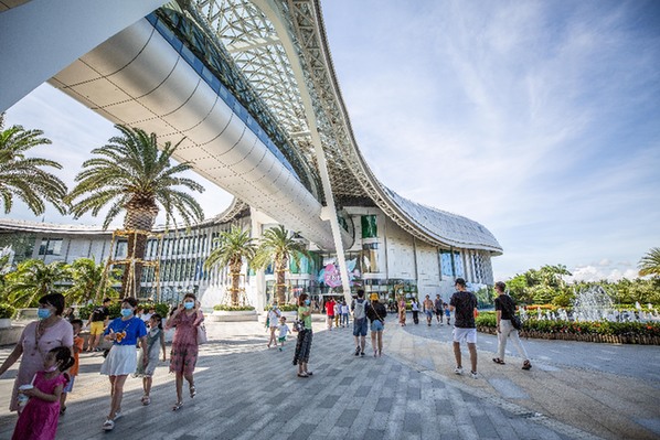 海南三亞國際免稅城購物的游客絡繹不絕。