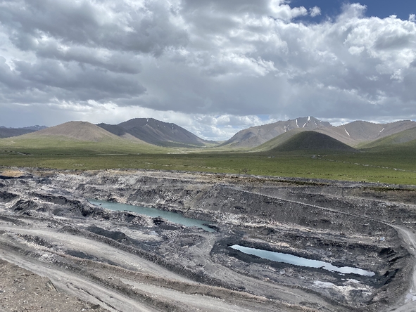 在興青公司露天開采現(xiàn)場,放眼望去,“開膛破肚”式采挖形成的巨型凹陷采場,自東南向西北方向蜿蜒5公里,形成一條寬約1公里、深達300米到500米的溝壑,猶如在高原濕地上劈出的一道巨大傷口。開挖剝離出的地下凍土、巖石、煤矸石,在礦坑附近堆起四五十米高的渣山,掩埋了大片草地。