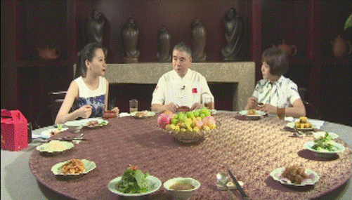 在觀眾的強烈要求下,李志順大師還現(xiàn)場教授了嘉賓一道快手時令菜——撣熗肉片。滑嫩的豬肉片用開水燙熟,過涼水后加入調(diào)好的醬汁,再配以當季蔬菜,這道清爽美味的涼菜在夏季極受歡迎。