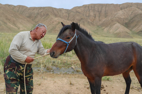 牧民那木德力在草場放馬。記者 馬希平 攝