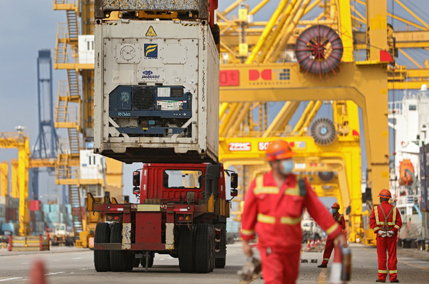 一輛貨車在大連港大連集裝箱碼頭有限公司港口裝載集裝箱。今年以來(lái),遼港集團(tuán)大連港以“完善航線布局,提高吞吐量”為抓手,大力推進(jìn)集裝箱內(nèi)外貿(mào)航線及多品種貨源的開發(fā),多措并舉拓展市場(chǎng)。記者 姚劍鋒 攝