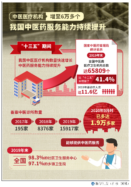 中醫(yī)醫(yī)療機(jī)構(gòu)增至6萬多個(gè) 我國(guó)中醫(yī)藥服務(wù)能力持續(xù)提升。新華社發(fā) 程碩 制圖