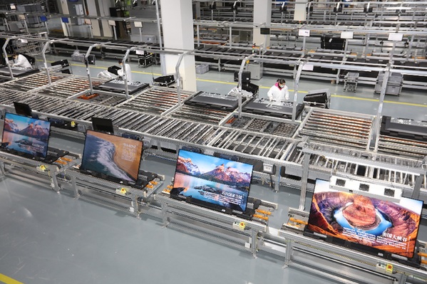 “工業(yè)生產(chǎn)的環(huán)節(jié)多、程序復(fù)雜,5G網(wǎng)絡(luò)具有部署靈活、高可靠高安全、大帶寬、低時(shí)延、海量連接等特點(diǎn),使得工業(yè)機(jī)器人、機(jī)器視覺、邊緣計(jì)算等5G與工業(yè)互聯(lián)網(wǎng)技術(shù)在生產(chǎn)中廣泛運(yùn)用,效率提升60%以上。”長虹智能制造有限公司相關(guān)負(fù)責(zé)人表示。記者了解到,在智能制造產(chǎn)業(yè)園內(nèi),相同數(shù)量工人的年產(chǎn)量可提升3倍,一臺電視機(jī)從客戶下單到交貨只需24天。