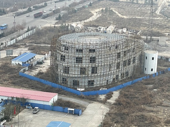 中國(guó)西部(韓城)水科技產(chǎn)業(yè)園內(nèi),水科技展覽館已完成主體建設(shè),進(jìn)入玻璃幕墻及鋼構(gòu)組裝階段,但仍被叫停。