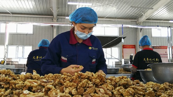 深圳援疆前指還協(xié)助光華現代農業(yè)公司開拓俄羅斯、土耳其等市場,通過中歐班列出口喀什核桃產品,帶動了5000多種植戶脫貧增收。光華公司也把核桃等特色農副產品深加工的衛(wèi)星工廠,設到喀什鄉(xiāng)村的田間地頭,吸納了上百名農村婦女務工。布阿提柯木·買買提告訴記者,她在核桃加工廠工作兩年了,每個月都有一兩千元收入,既能掙錢又不耽誤照顧老人孩子和家務,特別開心。