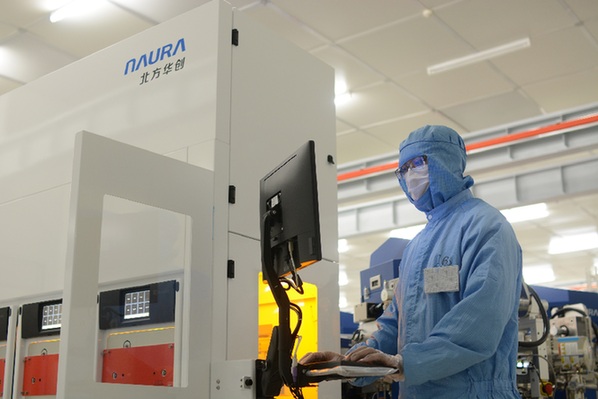在位于北京經(jīng)濟(jì)技術(shù)開(kāi)發(fā)區(qū)的北方華創(chuàng)二期生產(chǎn)基地,兩萬(wàn)多平方米的研發(fā)凈化車間內(nèi),身著凈化服的技術(shù)人員,正聚精會(huì)神調(diào)試著一臺(tái)臺(tái)大型集成電路裝備。