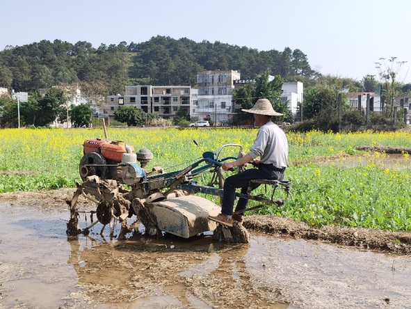 桂平市是廣西重要的糧食種植基地之一,去年糧食種植面積達(dá)157.21萬(wàn)畝,糧食總產(chǎn)量55.37萬(wàn)噸。一大早,桂平市石咀鎮(zhèn)治安村48歲的村民冼才貞趕到農(nóng)田,駕駛耕地機(jī)忙著犁地,一上午要把3畝剛灌溉的農(nóng)田翻犁一遍,為接下來(lái)的水稻育秧做好準(zhǔn)備。“我泡種300多斤,現(xiàn)在已經(jīng)開始育秧了。”冼才貞說(shuō),目前他種有150多畝水稻,今年準(zhǔn)備擴(kuò)種20畝稻田。