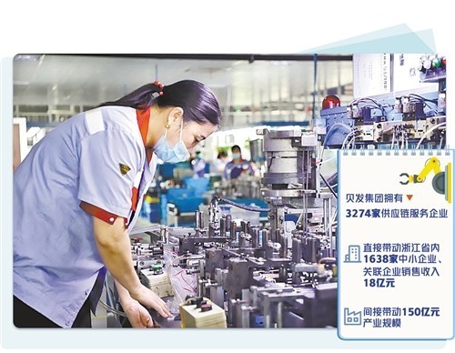 位于浙江省寧波市的貝發(fā)集團以制筆起家,是目前國內(nèi)文具行業(yè)的龍頭企業(yè)。貝發(fā)集團整合產(chǎn)業(yè)鏈、供應鏈,形成“一支筆、一條鏈、一個平臺”的創(chuàng)新發(fā)展戰(zhàn)略。如今,貝發(fā)集團擁有3274家供應鏈服務企業(yè),直接帶動浙江省內(nèi)1638家中小企業(yè)、關(guān)聯(lián)企業(yè)銷售收入18億元,間接帶動150億元產(chǎn)業(yè)規(guī)模,新增產(chǎn)業(yè)鏈就業(yè)崗位1萬個以上。