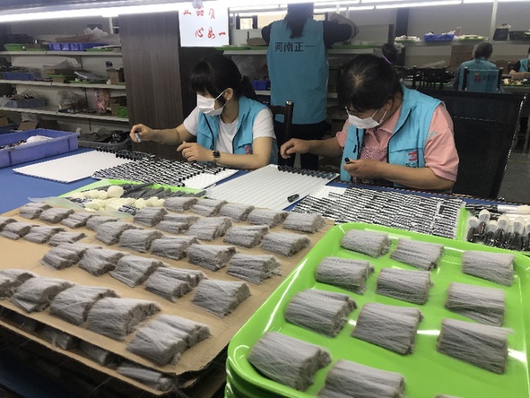 5月19日,工人在河南鹿邑一家化妝刷企業(yè)生產(chǎn)車間忙碌。記者 張興軍 攝