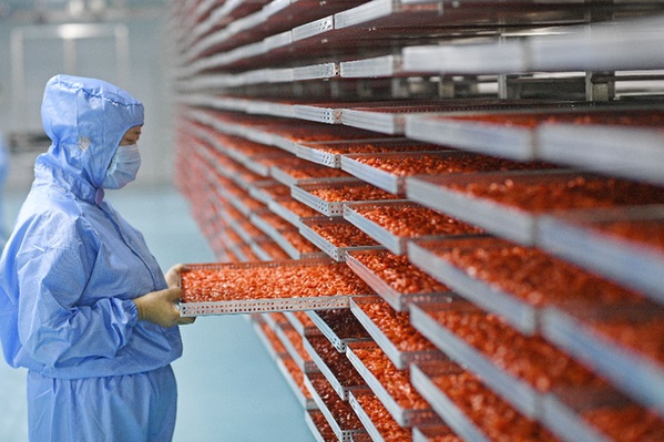????去年,寧夏將枸杞產(chǎn)業(yè)列入全區(qū)九大重點產(chǎn)業(yè)之一,現(xiàn)階段寧夏從事枸杞深加工的企業(yè)有240余家,枸杞鮮果加工轉(zhuǎn)化率達(dá)到25%。干果、酒類、功能性食品和中藥飲片等枸杞及其衍生制品達(dá)10大類60余種,12款特膳食品、4款保健產(chǎn)品批量生產(chǎn),枸杞原漿產(chǎn)能達(dá)到1萬噸以上,枸杞糖肽、護肝片等功能性食品已進入醫(yī)院營養(yǎng)配餐渠道。