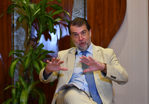 世衛(wèi)組織全球瘧疾規(guī)劃主任佩德羅·阿隆索(Pedro Alonso)在北京接受新華社記者專訪。新華社記者 王君璐 攝(2019年6月14日)