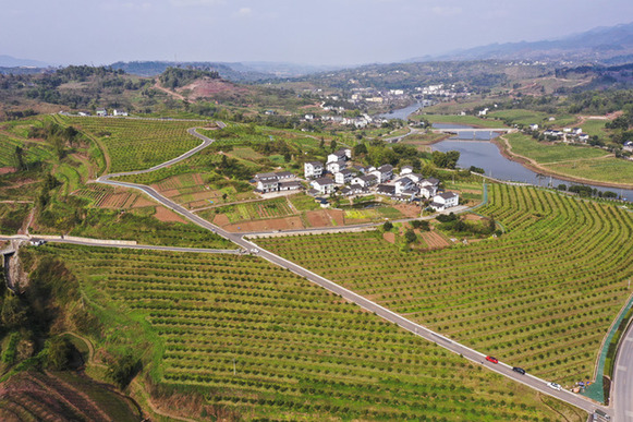 ????在渝北區(qū)統(tǒng)景鎮(zhèn)江口村,昔日的“巴掌田”如今成了大果園:全村1700多畝土地經(jīng)過“零改整、坡改緩”等宜機(jī)化改造,零散地改成整片地,一條條機(jī)耕道延伸到田間地頭,地里的柑橘樹已是阡陌成行、郁郁蔥蔥。