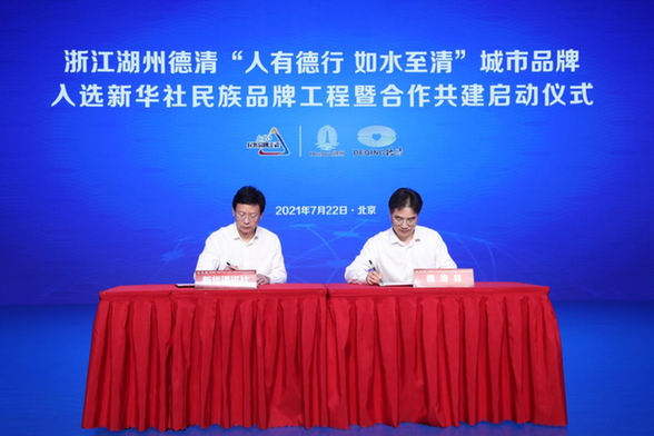7月22日,浙江湖州德清城市品牌入選新華社民族品牌工程簽約儀式在京舉行,現(xiàn)場首次發(fā)布“人有德行 如水至清”德清城市品牌主推廣語和視覺識別系統(tǒng)。