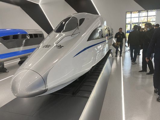 常州軌道交通產(chǎn)業(yè)展示館里的和諧號(hào)機(jī)車(chē)模型。記者 程子龍 攝