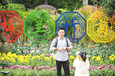 ??? 今年以來,湖北經(jīng)濟復蘇勢頭良好。圖為10月31日,游客在武漢琴臺綠化廣場賞菊拍照。 伍志尊攝(新華社發(fā))