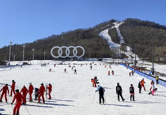 滑雪愛(ài)好者在長(zhǎng)白山國(guó)際度假區(qū)滑雪場(chǎng)滑雪。資料照片