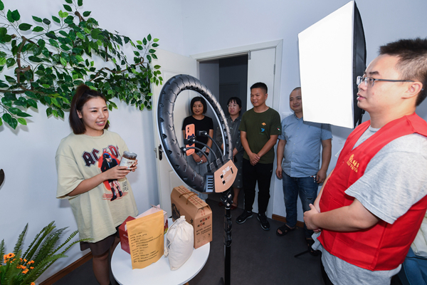 9月29日,在杭州市臨安區(qū)清涼峰鎮(zhèn)新農(nóng)人創(chuàng)客中心,黨支部正在開展直播培訓(xùn)活動(dòng)。近年來(lái),浙江省杭州市臨安區(qū)發(fā)現(xiàn)、挖掘、培養(yǎng)優(yōu)秀青年,篩選審核形成“好苗子”儲(chǔ)備庫(kù),吸納一批返鄉(xiāng)創(chuàng)業(yè)青年、來(lái)本地投資創(chuàng)業(yè)青年、村務(wù)工作者、社會(huì)組織骨干等積極向黨團(tuán)組織靠攏,鼓勵(lì)他們成為鄉(xiāng)村振興中的“領(lǐng)頭雁”,帶動(dòng)村民增收致富。新華社記者 徐昱 攝
