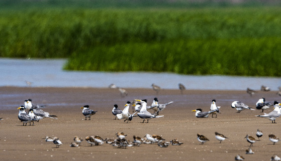 閩江河口濕地管委會提供的最新數(shù)據顯示,濕地野生動植物現(xiàn)已恢復至1089種,其中水鳥有152種,占福建水鳥種群規(guī)模80.4%,棲息濕地的水鳥年均超5萬只,中華鳳頭燕鷗、勺嘴鷸、黑臉琵鷺等多種珍稀水鳥個體數(shù)量超過種群1%,達到國際重要濕地標準,還有黑嘴端鳳頭燕鷗、卷羽鵜鶘、遺鷗等全球極危和瀕危鳥類成為濕地“常客”。