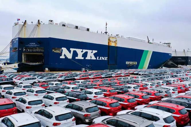 廣州南沙港汽車(chē)碼頭停放的即將出口的國(guó)產(chǎn)汽車(chē)。資料照片