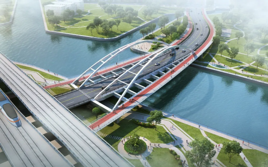 兩條路均新建跨吳淞江橋梁,同步實施排水、交通標志標線、信號燈、照明、綠化等附屬工程。