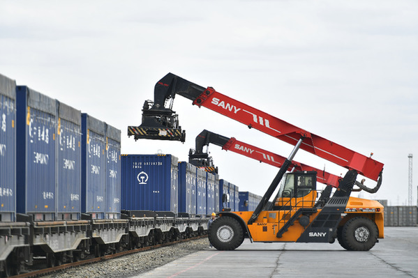 工人在鹽湖進行卸貨作業(yè)。記者 潘彬彬 攝