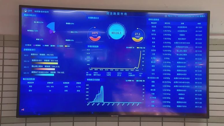 浦連菜場運(yùn)營方負(fù)責(zé)人邵宇向記者介紹:“電子屏連接了整個市場的智慧秤,它的作用是綜合性的。秤上的數(shù)據(jù)實時反映了目前市場的交易情況,同時我們也掌握到每個攤位經(jīng)營戶的經(jīng)營情況,有一些銷售情況不太好的,我們會及時對他的業(yè)態(tài)進(jìn)行調(diào)整,同時還指導(dǎo)他如何去改變,能更好地經(jīng)營下去,這樣也能夠提升我們整個市場的營商環(huán)境。”