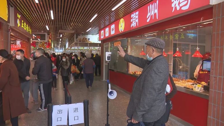 上午9點,重裝開業(yè)的浦連菜場吸引了不少老主顧的腳步。為應(yīng)對開業(yè)首日客流潮,菜場運(yùn)營方加大防控力度,時刻關(guān)注場內(nèi)人數(shù),避免顧客扎堆,每個出入口還有專人測量顧客體溫、確認(rèn)口罩佩戴情況。