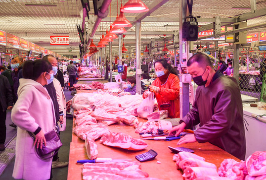 在農貿批發(fā)市場,市民在采購豬肉。(資料照片)新華社記者 彭源 攝