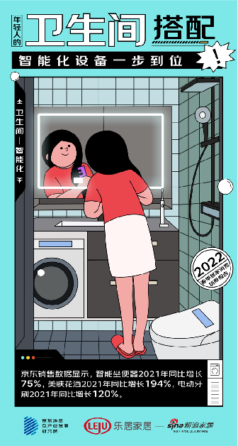 2020年,京東聯(lián)合知名家裝設(shè)計師及行業(yè)內(nèi)品牌商家共同發(fā)起提出“衛(wèi)生間將發(fā)生品質(zhì)化、人性化、個性化、智能化的新升級”。