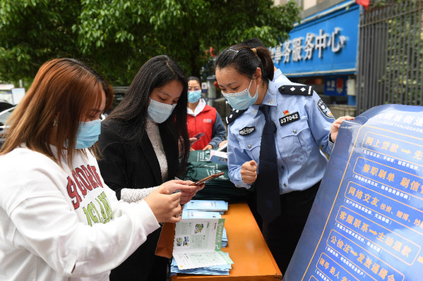 5月16日,貴州省貴陽市云巖區(qū)八鴿巖街道干部和民警為群眾講解防范電信詐騙知識。5月17日世界電信日到來之際,各地開展多種活動,迎接世界電信日。
