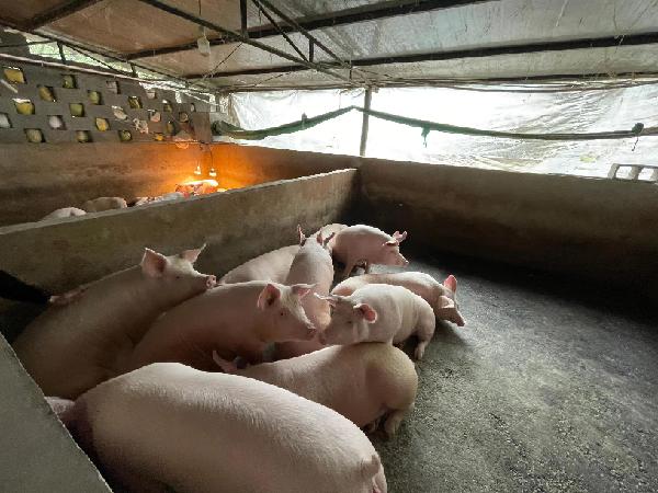 左圖為重慶市黔江區(qū)種豬養(yǎng)殖戶黃啟全豬場內(nèi)存欄的仔豬。
