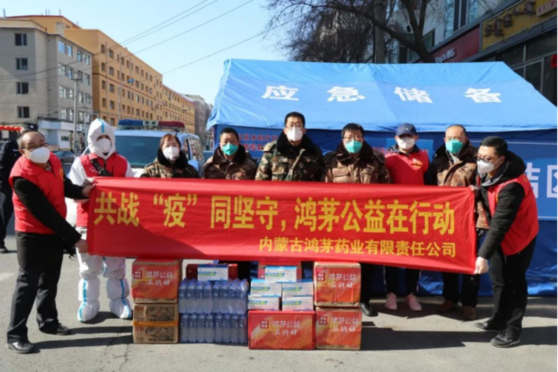 疫情暴發(fā)后,鴻茅藥業(yè)第一時間向內(nèi)蒙古自治區(qū)紅十字會捐款110萬元,其中100萬元專項用于對內(nèi)蒙古自治區(qū)抗擊疫情醫(yī)護人員的援助,10萬元專項用于在疫情防控一線崗位上因公殉職的突泉縣民警何建華同志的家屬慰問援助金。在疫情期間,鴻茅藥業(yè)多次向內(nèi)蒙古自治區(qū)烏蘭察布市涼城縣紅十字會捐款捐贈支援抗疫,同時成立公益專項小組,向呼和浩特市社區(qū)、幼兒園、環(huán)衛(wèi)團隊等捐贈抗疫物資,總金額達數(shù)百萬元。