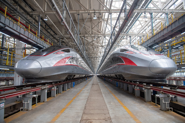 6月20日,鄭州至重慶高速鐵路襄陽東至萬州北段建成開通,圖為鄭渝高鐵全線開通運營重慶首發(fā)列車CR400AF復(fù)興號動車組。