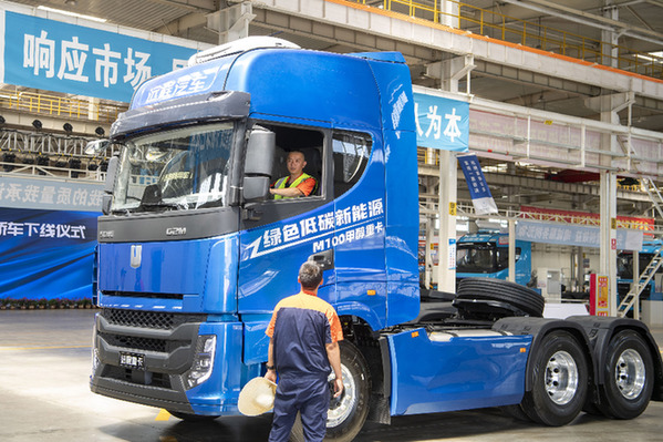 山西新能源汽車工業(yè)有限公司(吉利晉中基地)總裝車間內(nèi),工作人員駕駛甲醇汽車進(jìn)行出廠前的調(diào)試。新華社記者 楊晨光 攝