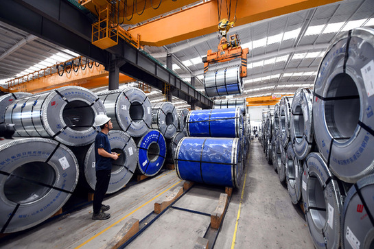 6月30日,山東日照一家新材料公司工人將鋼卷裝車外運(yùn)。近年來(lái),山東日照鋼鐵產(chǎn)業(yè)加速向精品化、綠色化、智能化、融合化方向轉(zhuǎn)型發(fā)展,形成以鋼鐵生產(chǎn)企業(yè)為引領(lǐng),鋼材加工、裝備制造、零部件制造等配套產(chǎn)業(yè)集群式發(fā)展的新格局。2021年,日照市鋼鐵產(chǎn)業(yè)產(chǎn)值突破1900億元。