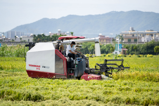 7月4日,在三亞市崖州區(qū)(壩頭)南繁公共試驗基地,農(nóng)機(jī)手在收割水稻。