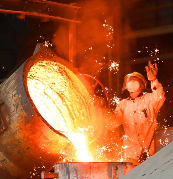 在中國(guó)一重集團(tuán)公司生產(chǎn)車間,工人在進(jìn)行生產(chǎn)作業(yè)。新華社發(fā)(陳建軍 攝)