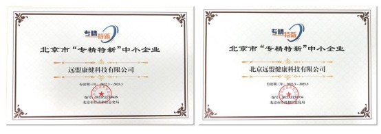 ▲ 專精特新證書-遠(yuǎn)盟康健集團(tuán)(左)北京遠(yuǎn)盟健康(右)
