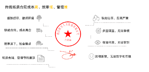 當(dāng)下,數(shù)字化時(shí)代,對(duì)于企業(yè)的人力資源部門來(lái)說(shuō),每天需要重復(fù)處理大量的合同、文件等材料,加上企業(yè)人員的流動(dòng)性大,一部分求職者的身份核實(shí)難,異地合同簽署不便,合同倉(cāng)儲(chǔ)管理繁瑣,查閱不便以及印章也容易發(fā)生被盜風(fēng)險(xiǎn)等,一系列的問題導(dǎo)致人力資源部門的效率底下,成本卻不斷的在增加。