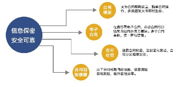 博爾捷DHRSaaS中合同管理模塊擁有強(qiáng)大的電子合同功能,多個(gè)合同主體,統(tǒng)一在線管理;還支持自定義合同模板設(shè)置;可以根據(jù)不同合同類型設(shè)置標(biāo)簽,定向發(fā)起;同時(shí)員工合同到期自動(dòng)提醒,自動(dòng)發(fā)起續(xù)簽流程等功能。