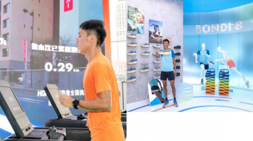 飛常跑量能量站以HOKA全新迭代之作Bondi 8為設計靈感,由半透明LED曲面屏打造開放式布局,頂部的發(fā)光燈帶勾勒出數(shù)字8的俯瞰效果,搭配極富沖擊力的醒目配色,為整個快閃店營造出充滿活力的運動感。入口處打造了品牌溯源墻,讓跑者們跟隨HOKA的腳步奔赴山野,在勃朗峰的映襯下,感受誕生于山脈的HOKA對長距離耐力運動的堅守,領略戶外運動的無窮魅力。店內設置了飛常跑量挑戰(zhàn)區(qū)及Bondi系列鞋款試穿區(qū),跑者們可以在巨型曲面屏營造的路跑風光中,盡情感受Bondi 8韌性緩震的飛凡腳感,享受身臨其境般的戶外奔跑體驗,并可通過掃描現(xiàn)場二維碼,將個人跑量實時匯入HOKA飛常跑量全國挑戰(zhàn)能量池。此外,現(xiàn)場還設有飛常跑量補給站,參與挑戰(zhàn)即有機會獲取HOKA運動T恤和能量特飲,釋放跑者專屬夏日活力。為與更多在地跑者締結更加深層次的聯(lián)結,HOKA深圳萬象天地直營體驗店也將持續(xù)打造多元跑者社群體驗服務,以豐富的跑團活動滿足跑者由身至心的所有需求。